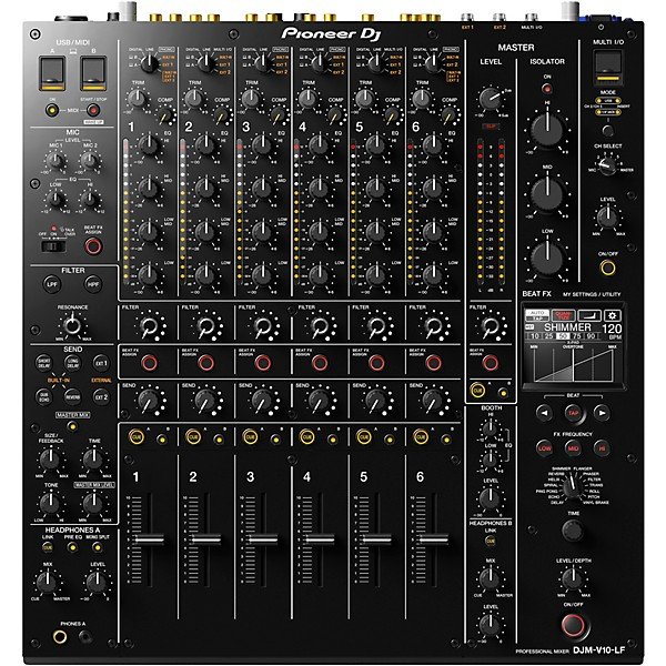 - Producing a warm and natural sound, the DJM-V10-LF lets you, and your audience, hear every detail in the music. Studio-quality 96-kHz/64-bit mixing and dithering processing within the DSP, as well as 32-bit high-quality A/D and D/A converters and a low-jitter clock circuit all help to produce a full low end that’s complemented by vibrant mids and precise highs.